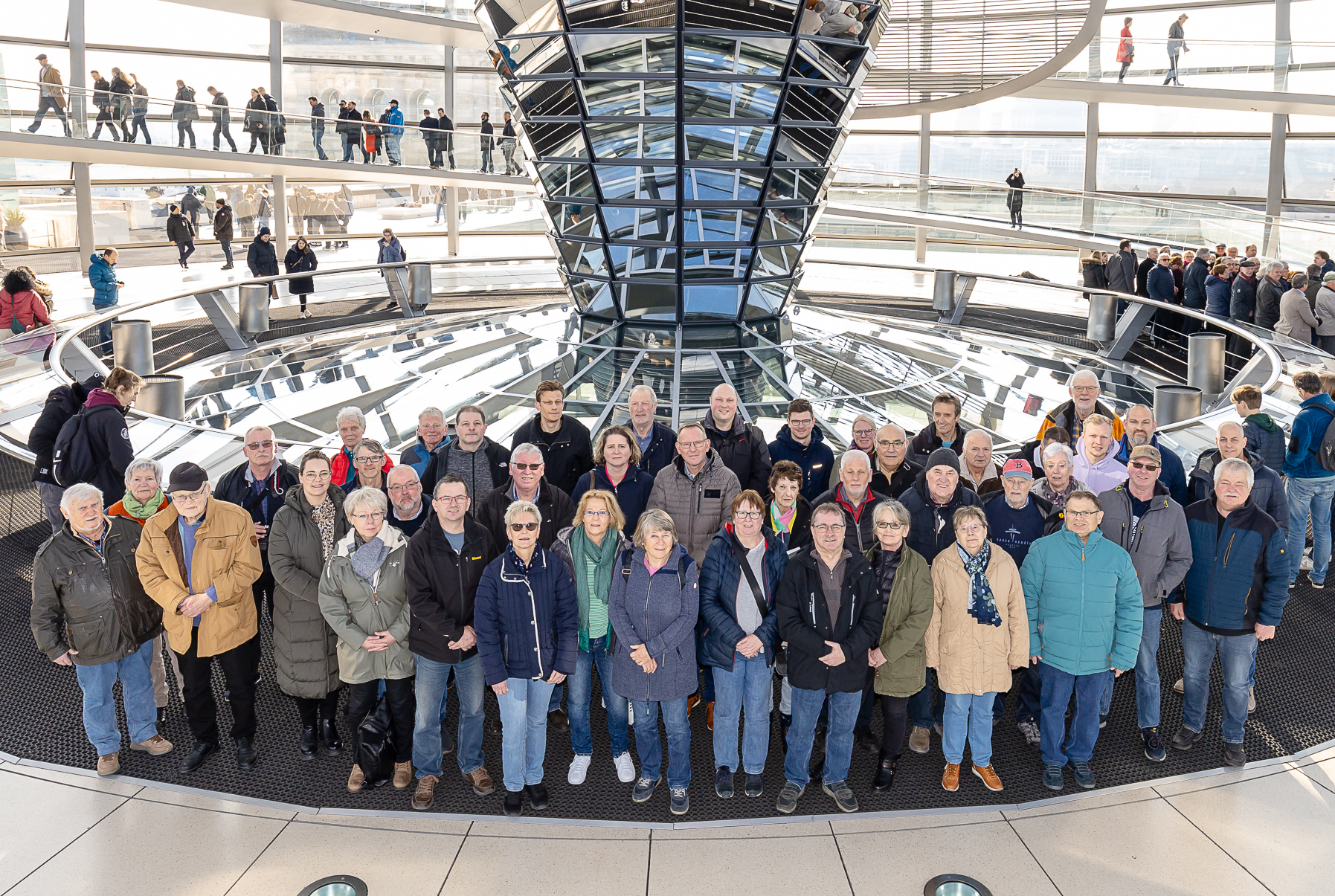 Natürlich stand auch eine Stadtrundfahrt auf dem Programm sowie als Höhepunkt am Donnerstag der Besuch des Bundestages. Beim Vortrag auf der Besuchertribüne durch den Besucherdienst des Bundestages ging es nicht nur um die wechselvolle Geschichte des Hauses, sondern auch um die Arbeit der Abgeordneten im Parlament und deren Arbeitsweise.