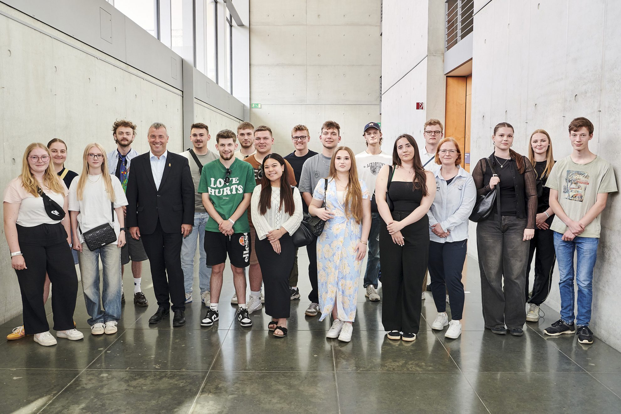 Nach dem Besuch einer Plenarsitzung durfte das Gespräch mit dem SPD-Bundestagsabgeordneten Johann Saathoff nicht fehlen. Saathoff sprach mit der Gruppe im Paul-Löbe-Haus unter anderem über die Waffenlieferungen in die Ukraine, seine Erfahrungen als Russlandbeauftragter, Hackerangriffe auf den Deutschen Bundestag und ob er eigentlich immer Freude an seiner Arbeit als Abgeordneter empfindet.