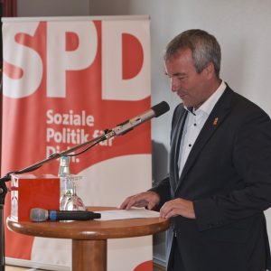 In seiner Vorstellungsrede sprach Saathoff unter anderem über die Krise bei Volkswagen und des bezeichnete das Vorgehen des VW-Vorstandes als unverantwortlich. Die Mitarbeiterinnen und Mitarbeiter hätten ihn und die Sozialdemokratie an ihrer Seite. Außerdem sprach er über die Demokratie in Deutschland und rief dazu auf, dass sich mehr Menschen aktiv an der Demokratie beteiligen. Er appellierte an die Anwesenden Delegierten, mehr Menschen zum Mitmachen zu bewegen. Saathoff sprach außerdem darüber, dass es noch mehr Deutschlandtempo brauche, um das Land weiter zukunftsfest aufzustellen.