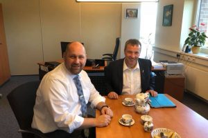 Leer - Der SPD-Bundestagsabgeordnete Johann Saathoff (Pewsum) war sichtlich beeindruckt: Die Fahrzeugflotte des Landkreises Leer umfasst mittlerweile 31 Elektroautos. "Wir konnten den Schadstoffausstoß auf durchschnittlich 72 Gramm Kohlendioxid verringern", berichtete Landrat Matthias Groote (SPD). "Vorbildlich und nachahmenswert", meinte Saathoff, der sich bei Groote informierte und seine Unterstützung bei Themen, die den Bundestag betreffen, anbot. Saathoff ist direkt im Wahlkreis Aurich/Emden gewählt worden, betreut aber auch den Landkreis Leer, der zur Zeit nicht durch einen Sozialdemokraten im Bundestag vertreten ist.